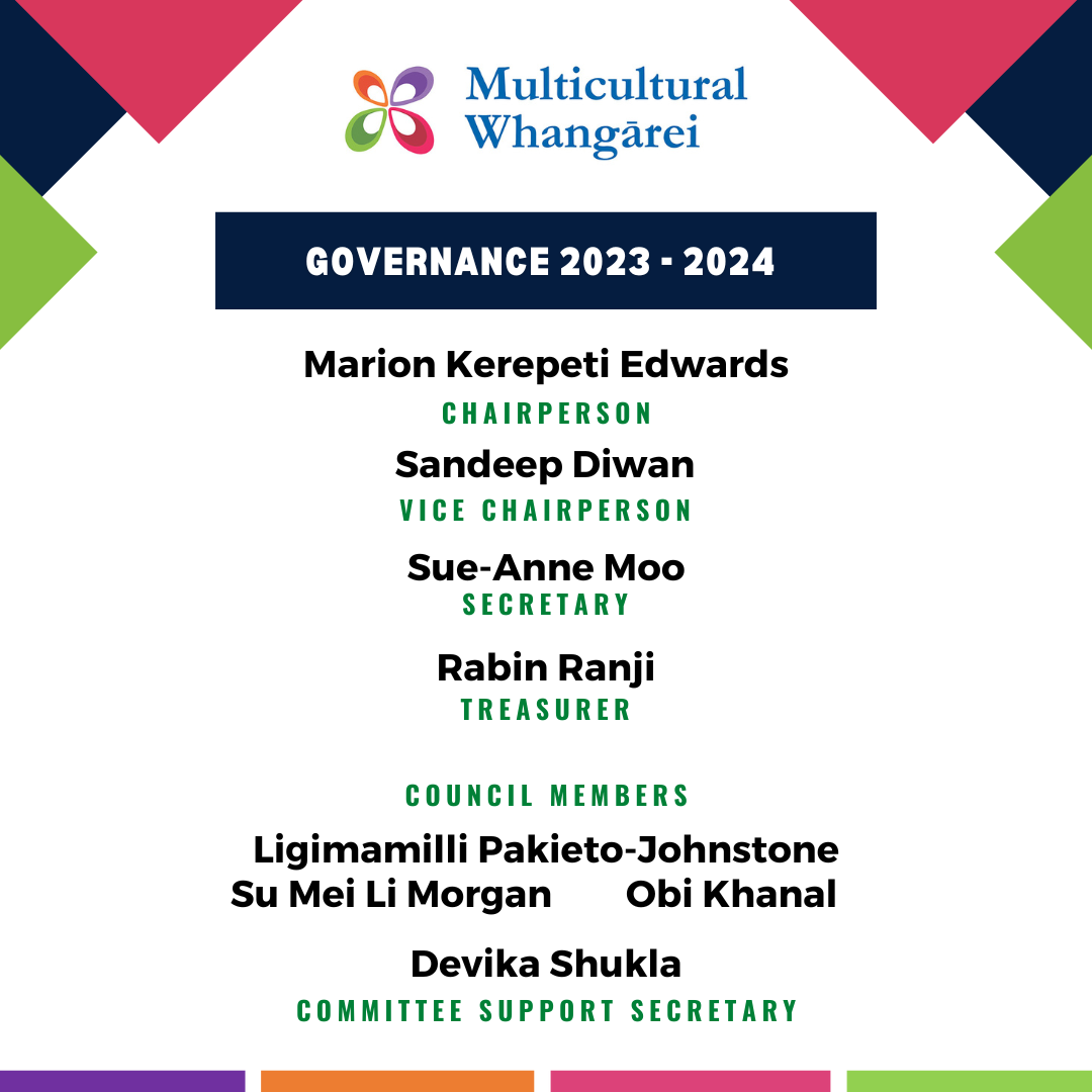 Multicultural Whangārei is run by a volunteer committee of four executive officers and four to six additional committee members who oversee the governance of the organisation, set strategic goals and advocate for the centre.